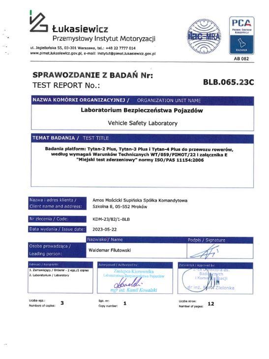 W Polsce (i całej Unii Europejskiej) nie ma obowiązku posiadania konkretnych certyfikatów, takich jak TÜV czy CE, dla platform rowerowych. Jednak są one silnie rekomendowane.