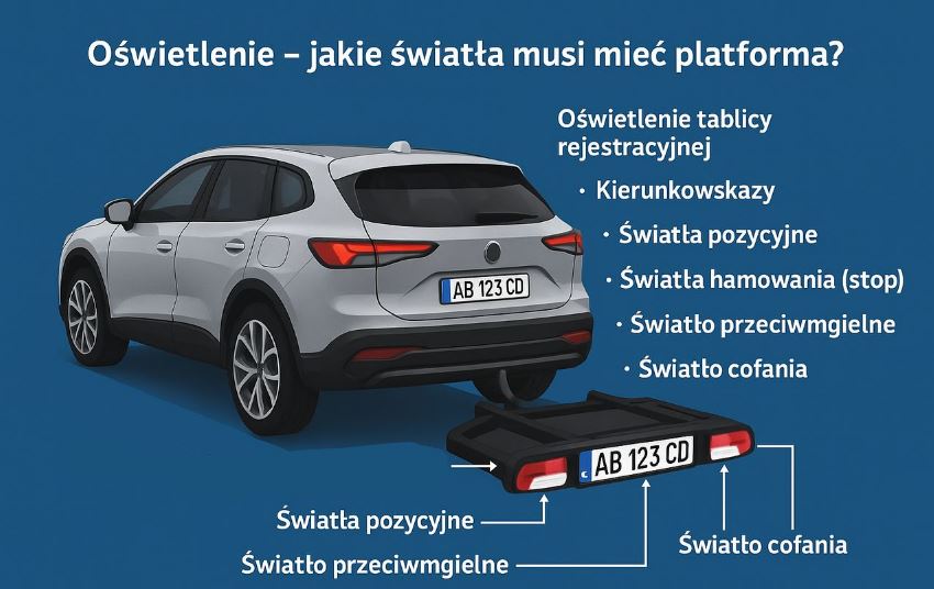 Zgodnie z polskimi przepisami, jeśli platforma zasłania tablicę rejestracyjną pojazdu, kierowca ma obowiązek zamontować trzecią tablicę na bagażniku. Można ją wyrobić w wydziale komunikacji właściwym dla miejsca zamieszkania właściciela pojazdu.