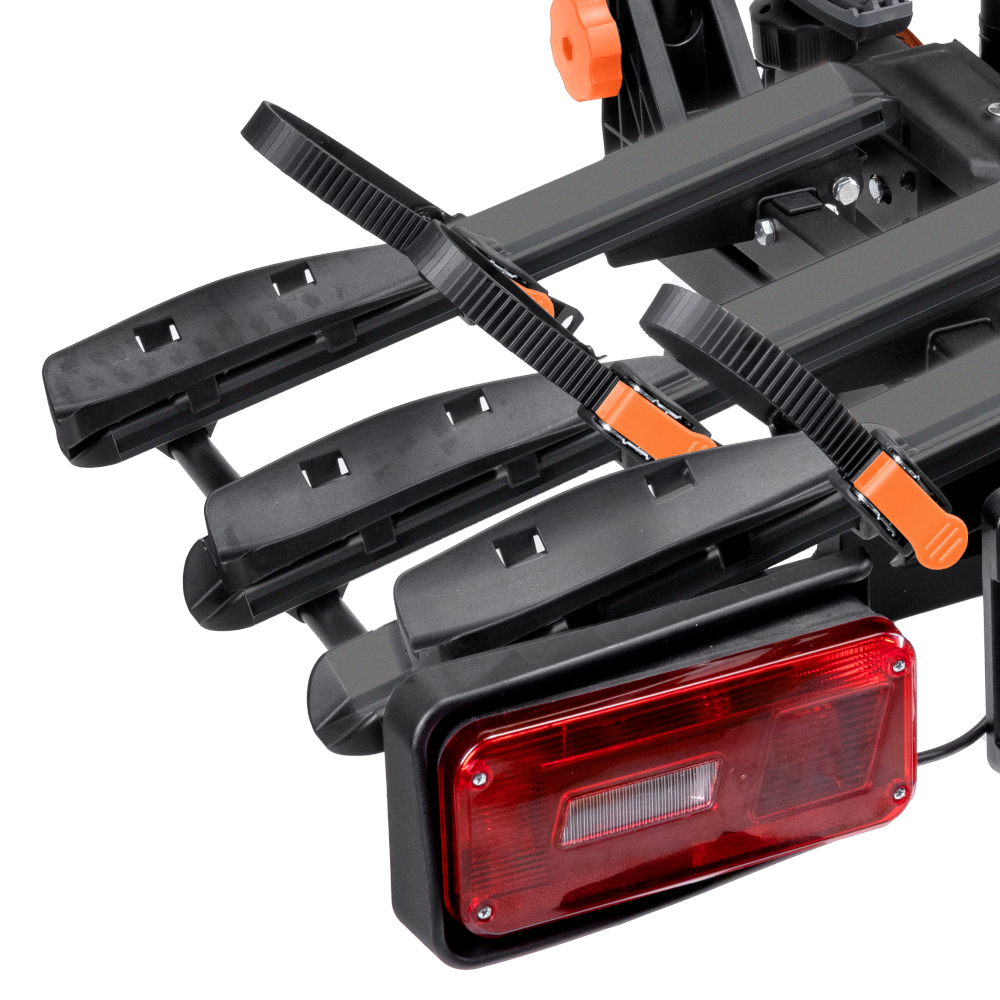 Jest to z pewnością jeden z kluczowych elementów platformy rowerowej, czyli zabezpieczenie samej platformy na haku, jak i przewożonych rowerów.