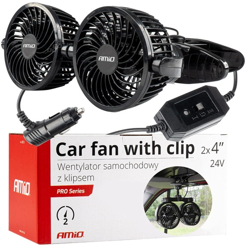 Podwójny Wentylator wiatrak samochodowy z klipsem 24V