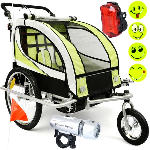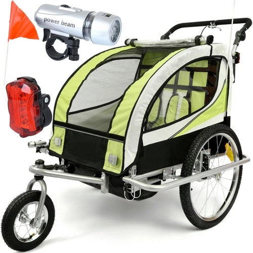 Przyczepka rowerowa z amortyzatorem 2-osobowa +JOGGER zielona + gratis