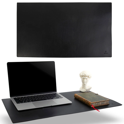 Elegancka mata na biurko podkładka pod myszkę ze skóry Baltan XL 70x50 cm czarna