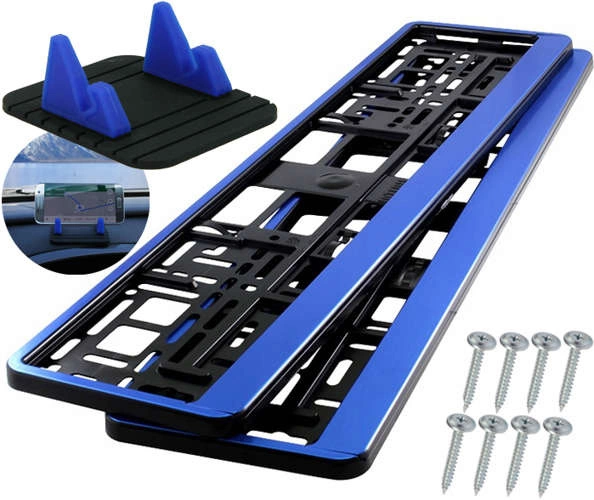 Ramki pod tablicę rejestracyjną HP niebieskie 2 szt + gratisy (wkręty mocujące oraz uchwyt na telefon)