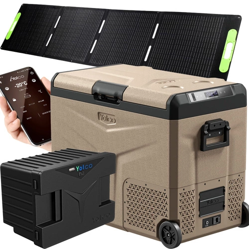 Lodówka turystyczna z kompresorem Yolco TCX60 Sand 63L + bateria modułowa + panel solarny 200W