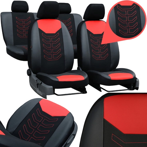 Pokrowce samochodowe na siedzenia samochodowe Pok-Ter Spider Czerwone grube z haftem materiał+skóra