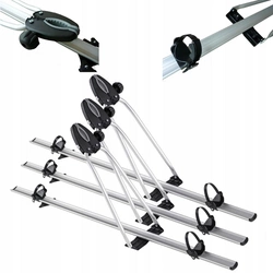 - Pewność mocowania roweru poprawia jednolita rynna z profilu aluminiowego z przesuwnymi pryzmami blokującymi koła mocowane masywnymi paskami.