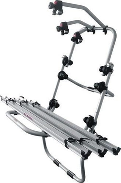 Aluminiowy bagażnik rowerowy na klapę do przewozu trzech rowerów.