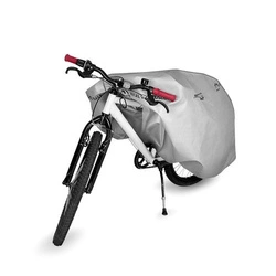 Całoroczny pokrowiec ochronny na rower chroniący rower przed niekorzystnymi wpływami środowiska zewnętrznego. Pokrowiec jest trudno przemakalny i jednocześnie paroprzepuszczalny dzięki czemu rower pod pokrowcem jest zabezpieczony przed deszczem lub śniegiem a gromadząca się pod pokrowcem wilgoć jest odprowadzona na zewnątrz.
