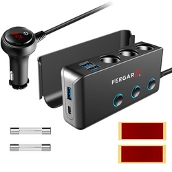 ✅CIGA marki Feegar to świetne akcesorium do Twojego samochodu. Jest to mocny i wielofunkcyjny rozdzielacz gniazda samochodowego z wyłącznikiem głównym oraz 3 niezależnymi wyłącznikami, który idealnie sprawdzi się w Twoim pojeździe. Nie musisz wyciągać innych urządzeń z zapalniczek jeśli nie chcesz z nich korzystać po prostu wciśnij przycisk, który odetnie zasilanie w odpowiednim porcie. Jest to Polska marka w branży elektroniki użytkowej.