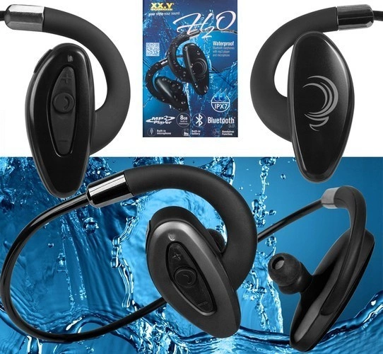 Wodoodporne słuchawki bezprzewodowe z łącznością Bluetooth, wbudowanym odtwarzaczem mp3 8GB oraz mikrofonem do rozmów telefonicznych.