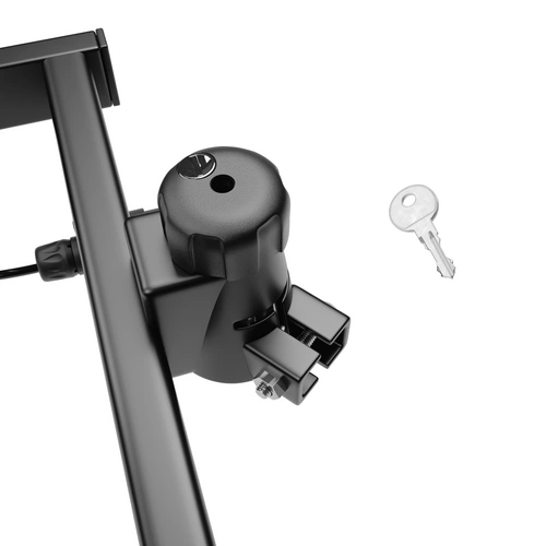 Bagażnik zabezpiecza się za pomocą gałki z zamkiem, dołączanej w komplecie.