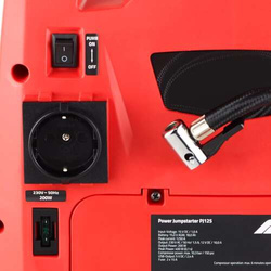 Jump Starter F1 10834, został wyposażony w gniazdko domowe 220V AC, o mocy 200W.