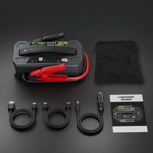 Lokithor J3250 PRO oferuje imponujący prąd rozruchowy 3250A – idealny do silników benzynowych do 9,5L i diesla do 7,5L. Sprawdzi się wszędzie: w garażu, na budowie, w gospodarstwie i w marinie.