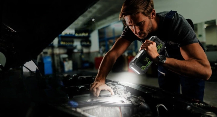 Wielofunkcyjny rozrusznik pojazdów YESPER o unikalnym, terenowym wyglądzie, dynamicznym designie inspirowanym prędkością i pasją. Stacja zasilania o pojemności 299,52 Wh, którą można wygodnie obsługiwać jedną ręką, pełni również funkcję rozrusznika akumulatorów.