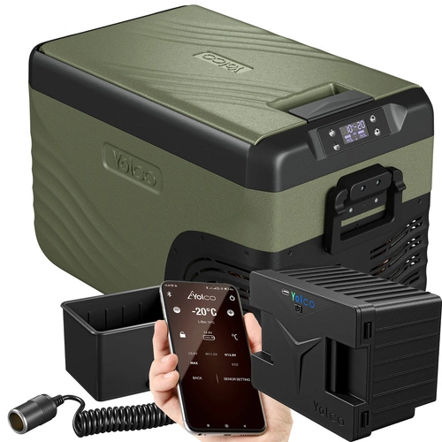 Lodówka turystyczna z kompresorem Yolco KX30 Green 25L 12V 24V 240V + bateria modułowa Yolco SC4B 15600 mAh