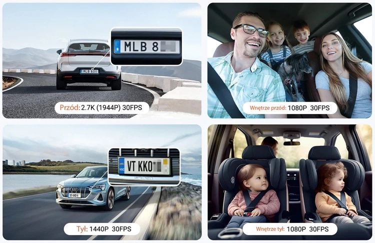 Kanały nagrywania: 4 (przód, tył, wnętrze x2 – boczne szyby)