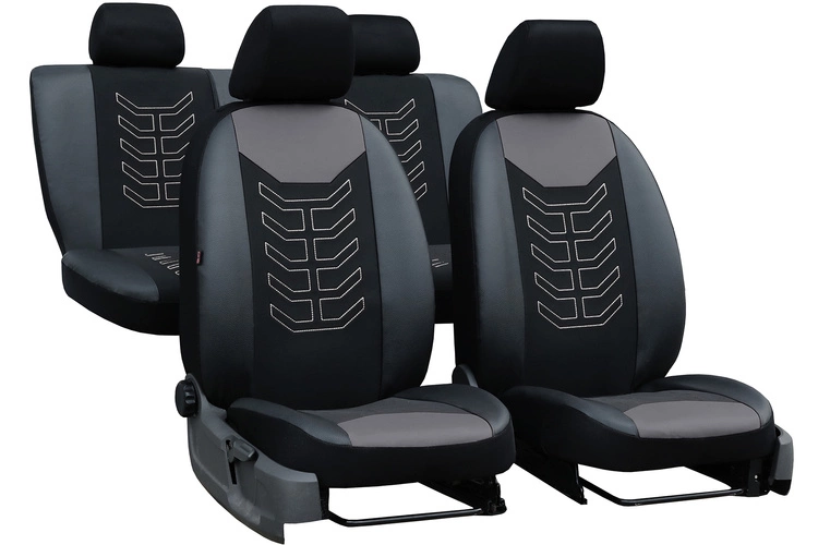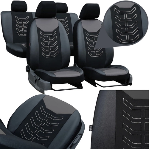 Pokrowce samochodowe na siedzenia samochodowe Pok-Ter Spider Szare grube z haftem materiał+skóra