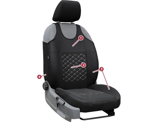 Odpowiada za odpowiednie profilowanie pokrowców względem foteli, zwiększając komfort użytkowania. Dodatkowo zapobiega marszczeniu i deformacji materiału.