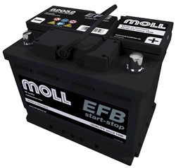 Akumulator MOLL EFB łączy w sobie zalety tradycyjnego akumulatora kwasowego z wysoką wydajnością elektryczną oraz ponad czterokrotnie dłuższą żywotnością cykliczną. Dzięki temu stanowi idealne rozwiązanie dla pojazdów wyposażonych w systemy Start-Stop, rekuperację energii oraz liczne odbiorniki o dużym zapotrzebowaniu na prąd. Doskonała stabilność termiczna sprawia, że akumulator MOLL EFB doskonale sprawdza się również w warunkach podwyższonej temperatury pracy.