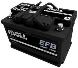 Akumulator MOLL EFB łączy w sobie zalety tradycyjnego akumulatora kwasowego z wysoką wydajnością elektryczną oraz ponad czterokrotnie dłuższą żywotnością cykliczną. Dzięki temu stanowi idealne rozwiązanie dla pojazdów wyposażonych w systemy Start-Stop, rekuperację energii oraz liczne odbiorniki o dużym zapotrzebowaniu na prąd. Doskonała stabilność termiczna sprawia, że akumulator MOLL EFB doskonale sprawdza się również w warunkach podwyższonej temperatury pracy.