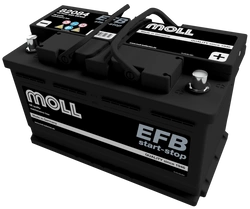 Akumulator MOLL EFB łączy w sobie zalety tradycyjnego akumulatora kwasowego z wysoką wydajnością elektryczną oraz ponad czterokrotnie dłuższą żywotnością cykliczną. Dzięki temu stanowi idealne rozwiązanie dla pojazdów wyposażonych w systemy Start-Stop, rekuperację energii oraz liczne odbiorniki o dużym zapotrzebowaniu na prąd. Doskonała stabilność termiczna sprawia, że akumulator MOLL EFB doskonale sprawdza się również w warunkach podwyższonej temperatury pracy.