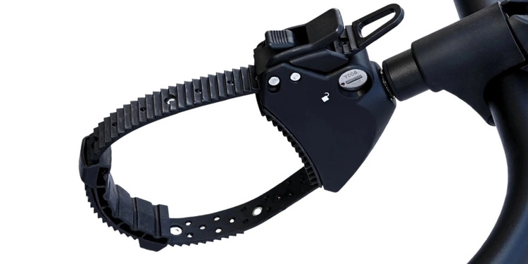 Wzmocnione paski mocujące – elastyczne i dopasowujące się do różnych średnic ram, wyposażone w metalową wkładkę na całej długości, co praktycznie uniemożliwia przecięcie paska.