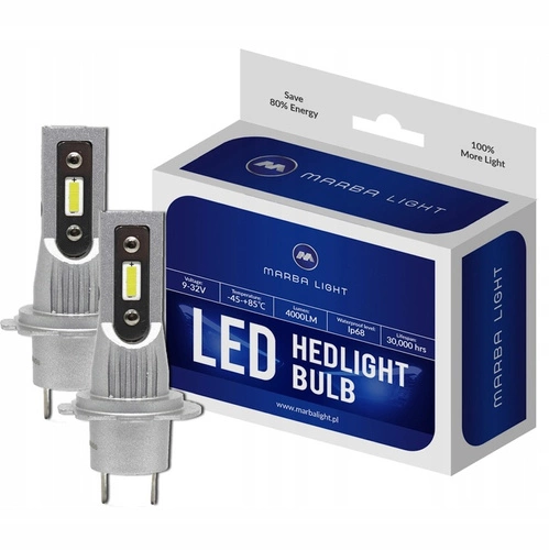 Żarówki LED Marba Light H7 6000K Białe 1:1 Oryginalny Rozmiar